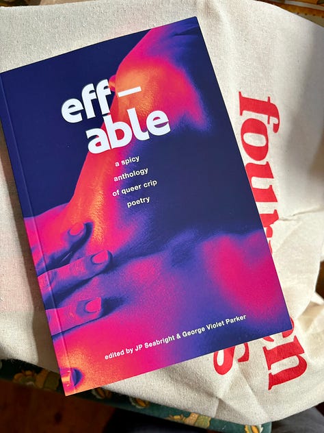 This is not the first time I’ve written about eff-able, the project I’m co-running with friend and fellow erotic poetry lover George Parker. And I’m sure it won’t be the last. But I want to celebrate it this week in particular. Publication day was this Monday (2nd June) which was a wonderful way to kick off Pride month. A chunky bag of books arrived the next day from our wonderful publisher fourteen poems. And, oh my, these books are so very sexy!