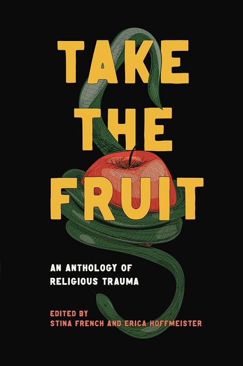 Take the Fruit: An Anthology of Religious Trauma published by Listen to Your Skin Press. Its subtitle describes pretty well the contents, but here’s the blurb for further revelation - “a collection of stories concerning the social and personal effects of high-control religion, and survivors' attempts to heal, spanning many religions, and many genres.”