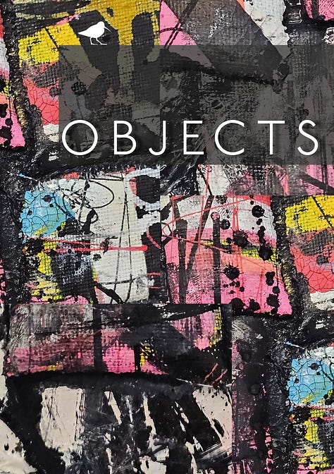 OBJECTS from Dunlin Press, in which I have an extract of a longer collaborative (chapbook-length) work called Felt Cute Might Delete Later with the experimental wizard Richard Capener. Richard approached me in early 2022 and we embarked on an improvisational and somewhat haphazard piece, with no particular ‘plan’ or constraints in mind, other than being inspired by jazz experimentalism, in particular Derek Bailey’s writings on Improvisation, and writers/creatives such as Caroline Bergvall, Bernadette Mayer and Charles Bernstein. Richard and I hadn’t even met at this point, and all our communication about the project was done via Google Docs. More info about Richard via his substack here: Richard Capener